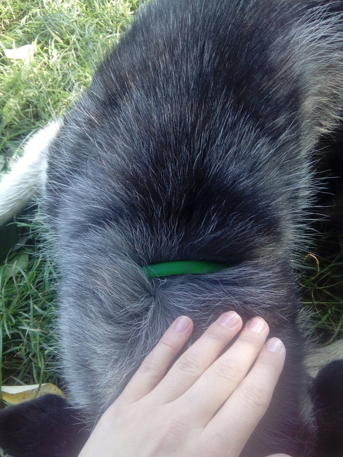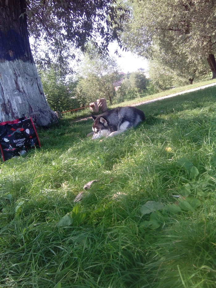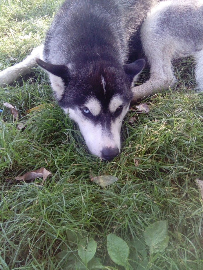Загорали в Дубровицах, в процессе к нам подошел пес, обнюхал, полизал руки, лег рядом и лежал все время пока мы там были. От печенья и воды отказался. Мы сначала думали что он с кем то отдыхает, но люди сменялись одни на других, затем поляна и вовсе опустела, а он все лежал с нами. Глаза разного цвета: правый голубой, левый черно карий. Худой, немого грязные лапы и очень стертые когти (может это нормально для этой породы, я не собачник).