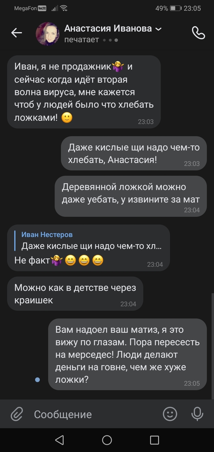 Перекосилась Натаха вся и убежала, даже не рассказала, как дела.