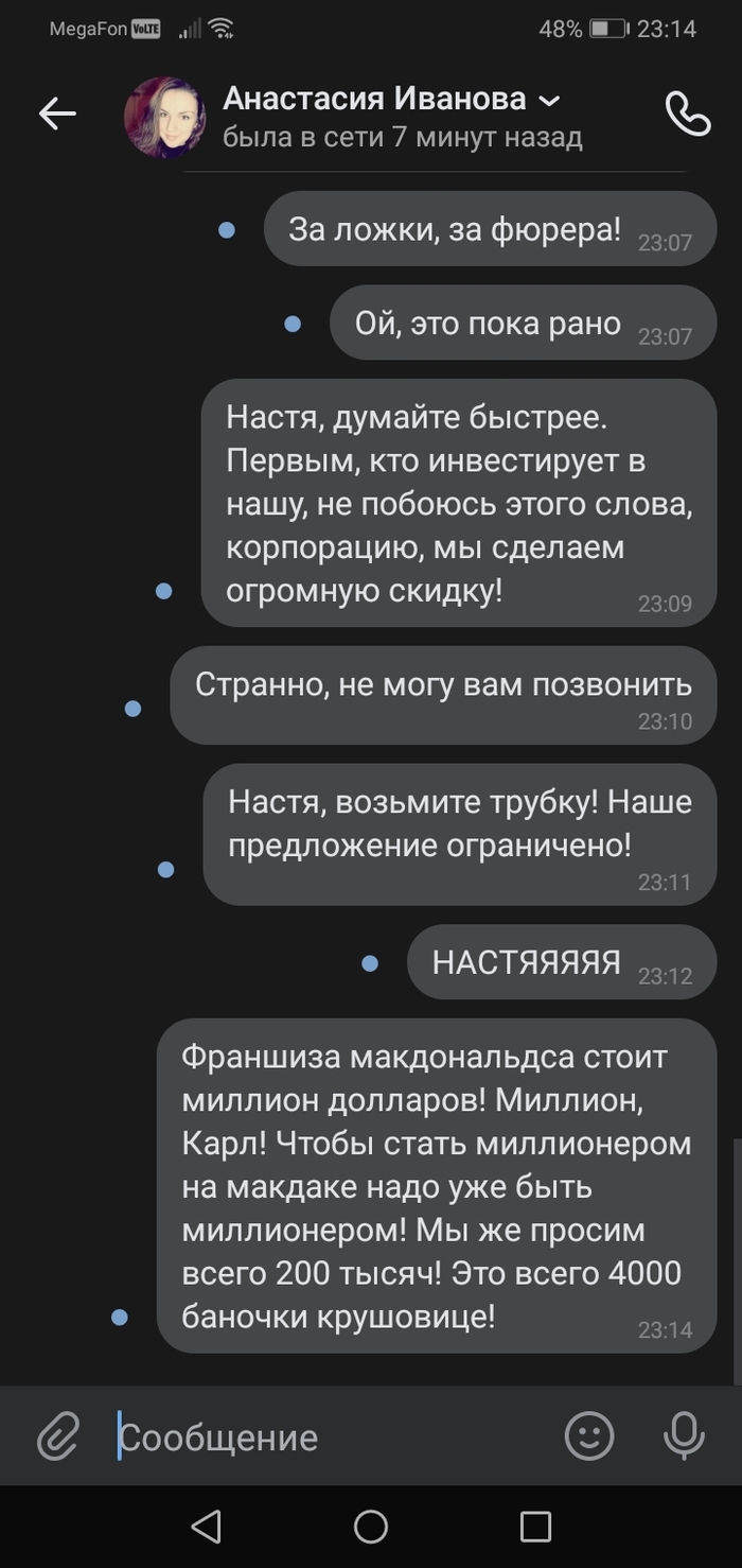 Ну, муж (то есть я) незамедлительно в разговор вступаю.