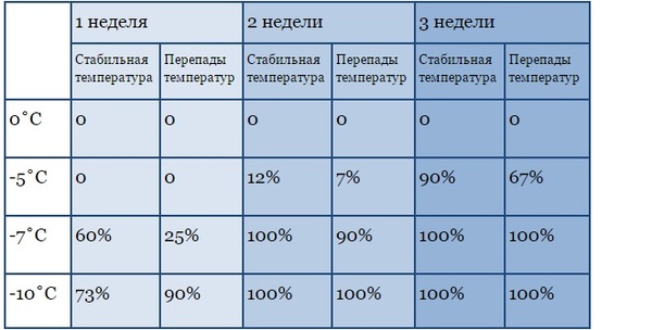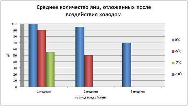 В этом аспекте показатели еще более обнадеживающие – двухнедельный режим -5˚С впоследствии вполовину снижает количество новых яиц.