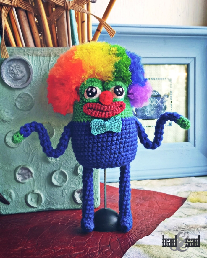 При переезде я связала аж 5 своих любимых арлекинов в разных расцветках. В последнее время именно эти модели игрушек у меня в«любимчиках», потому что они открывают безграничное множество вариантов сочетания цветов.