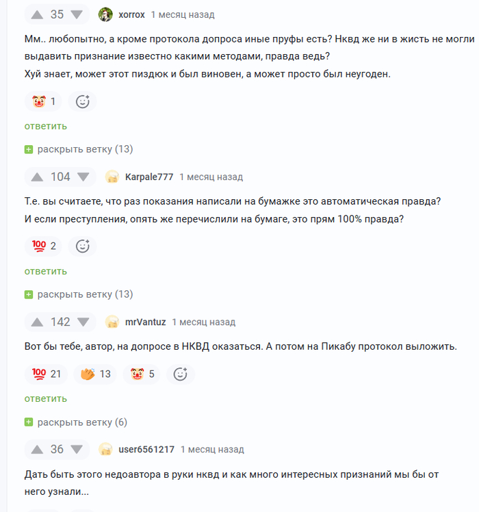 То есть вы, безоговорочно верите всякой чуши, которую пишут в интернете разные личности, рассказывая "ужасные ужасы" о сталинских репрессиях, хотя эти писаки не предоставляют вообще никаких фактов и документов, а только одни фантазии. А вот когда всю эту чушь разбирают, да еще с фактами, выкладывая при этом еще и документы, вы этому почему то не верите, и начинаете сочинять разную ахинею, в унисон той ахинеи, которую сочинили до вас. И надо сказать, что вы ничем не отличаетесь от личностей, которые в интернете подняли вой, после ареста актера Ефремова.