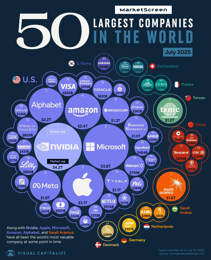 Рыночная капитализация Nvidia превысила 4 триллиона долларов, что вывело компанию в лидеры.