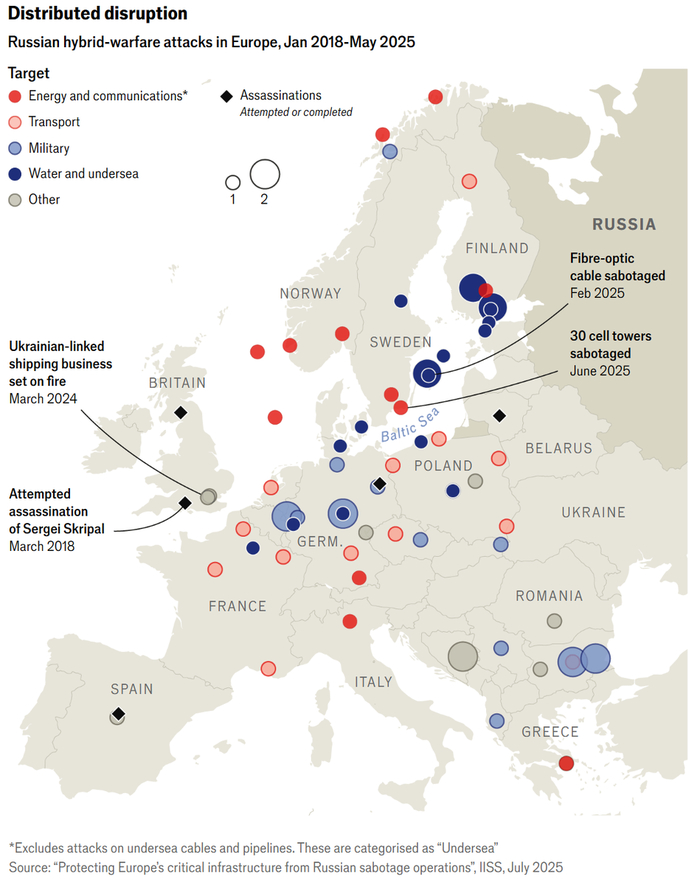 В новом отчете Чарли Эдвардса и Нейта Сейденштайна из Международного института стратегических исследований (IISS), европейского аналитического центра, раскрывается, как кампания России по саботажу и подрывной деятельности в Европе резко усилилась с 2022 года.