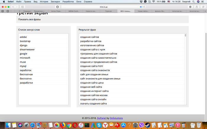 А теперь представим что мы взяли раздел «разработка сайтов», собирали туда ключи, содержащие «разработка, создание, изготовление сайтов» так вот получился файл на 650 фраз, в которых будут все запросы и целевые и не целевые.