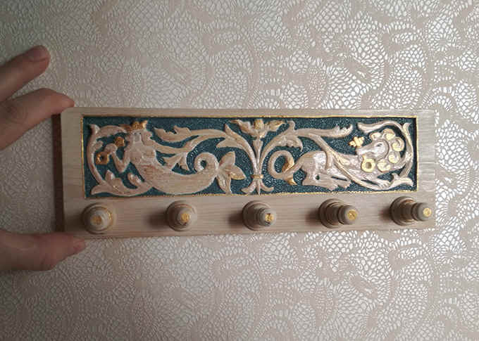 [моё] Резьба Ключница Вешалка Русский стиль Русалка Лев Орнамент Длиннопост