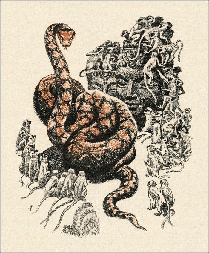 – Слушай, детёныш! – сказал медведь, и голос его прогремел, как гром в жаркую ночь. – Я научил тебя Закону Джунглей – общему для всех народов джунглей, кроме Обезьяньего Народа, который живёт на деревьях. У них нет Закона. У них нет своего языка, одни только краденые слова, которые они перенимают у других, когда подслушивают, и подсматривают, и подстерегают, сидя на деревьях. Их обычаи – не наши обычаи. Они живут без вожака. Они ни о чём не помнят. Они болтают и хвастают, будто они великий народ и задумали великие дела в джунглях, но вот упадёт орех, и они уже смеются и всё позабыли. Никто в джунглях не водится с ними".
