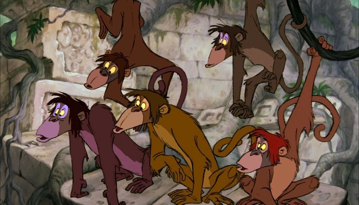 Это нарисованный в "Книге джунглей" образ бандерлогов, точнее говоря - Бандар-Лога (в дословном переводе с хинди Bandar-log - "обезьяний народ").