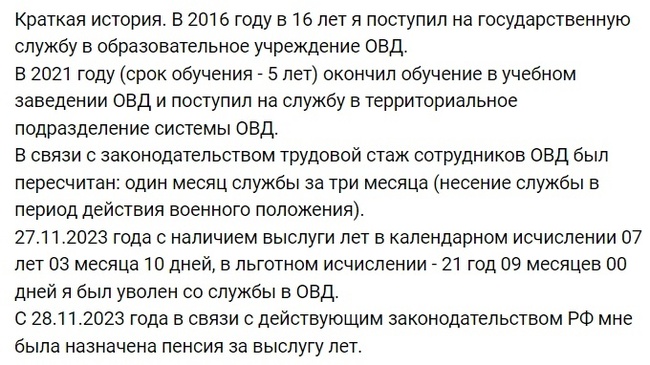 И вот, 28 ноября 2023 года, в соответствии с действующими законами Российской Федерации, Павлу Степченко была назначена пенсия за выслугу лет в системе МВД России.
