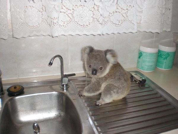 Коалы известны тем, что не пьют воду, но Джимми любил сидеть у раковины и играть с водой: