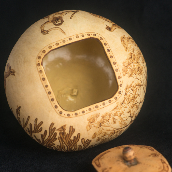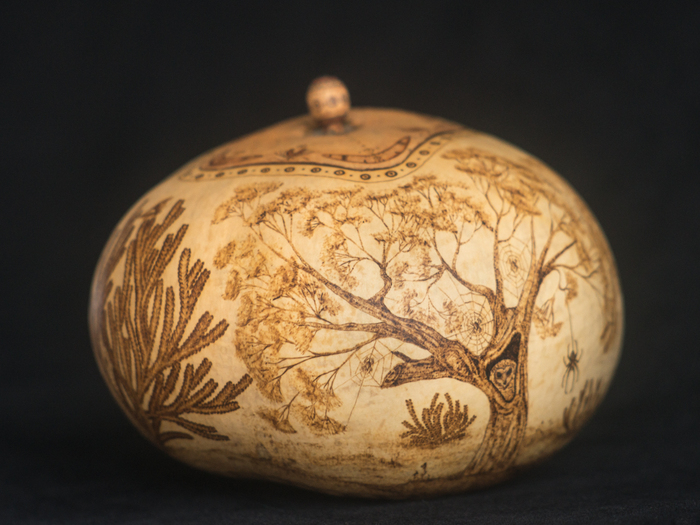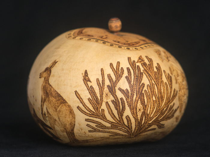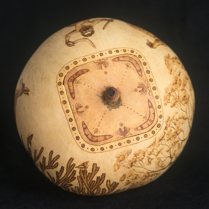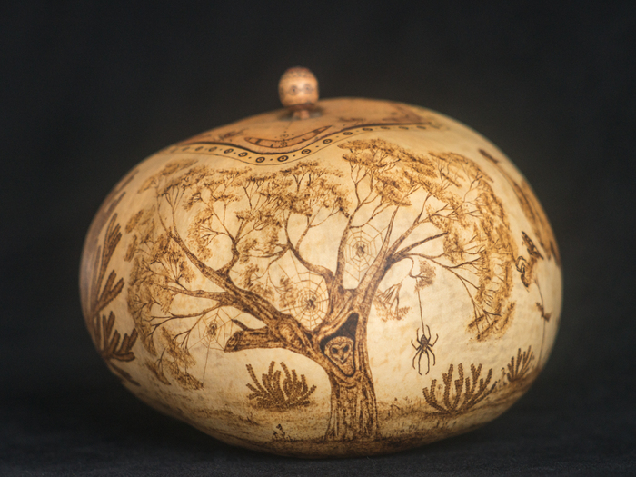 На выжигание вдохновил рассказ «Бумеранг-луна» из книги «Мифы и легенды Австралии», которую я случайно нашла в шкафчике городского буккроссинга.