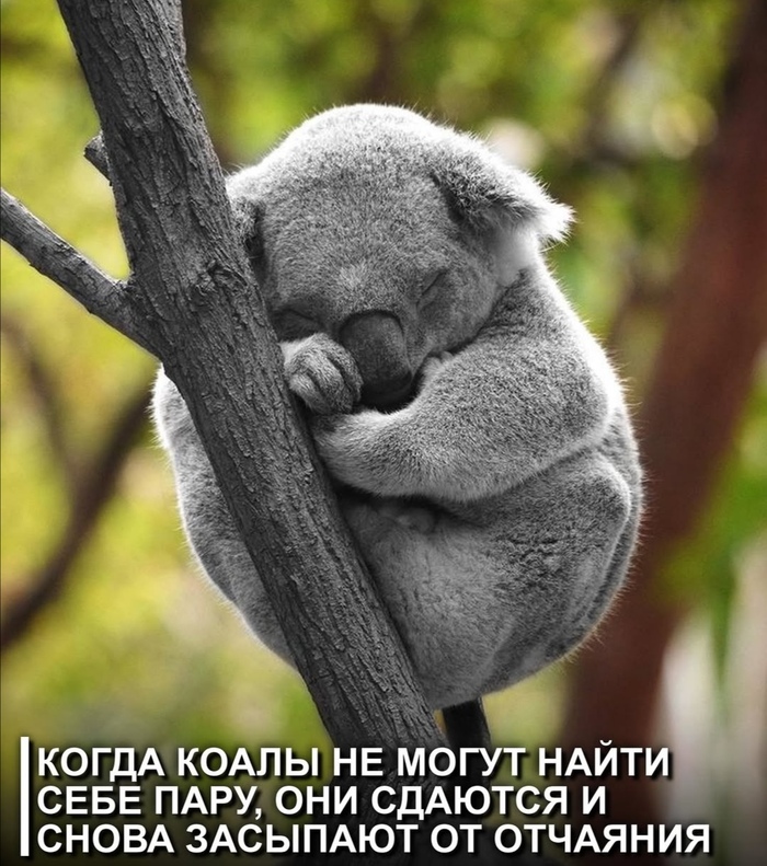 На тусовки просто не остаётся сил. Коала может проснуться, поесть и уснуть обратно. Ей норм.