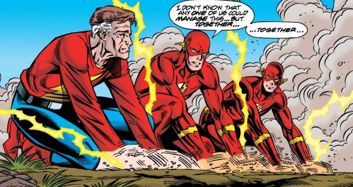 С последствиями преждевременной смерти Флэша придётся разбираться Флэшу в комиксе The Flash #150. Если бы нумерация не прерывалась, это был бы 500 выпуск комикса про Флэша. На страницах разыгрывается альтернативная версия Кризиса на Бесконечных Землях. Уолли Уэст оказывается во вселенной Антиматерии, и перед ним – сам Анти-Монитор, ужасающе мощный враг. Довольно скоро до Уолли доходит – в одиночку даже ему, самому быстрому человеку на Земле (нет уже той Земли, милок…) не победить. А Анти-Монитор не один – с ним армия верных Громовержцев Кварда (увидел, как опечатался - даже исправлять не хотелось) и целая туча теневых демонов. А Уолли совсем один…или нет? Подгадав момент, Флэш делает рывок – и вновь перемещается во времени ненадолго назад – как раз в тот момент, когда величайшие герои Земли должны погибнуть от рук Анти-Монитора. Вибрируя на суперскорости, чтобы оставаться невидимым и не прошатать своим появлением таймлайн ещё сильнее, Уолли делится со всеми присутствующими героями (включая Кид Флэша, Уолли Уэста) своей суперскоростью.