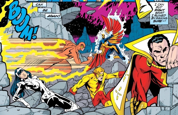 Отдохнув, Уолли и Барри с новыми силами возвращаются к сражению, прихватив из музея ледяную пушку Капитана Холода. С её помощью Барри замораживает амулет Кобальта, что возвращает Джея Гаррика в нормальное состояние. После этого три поколения Султанов Скорости объединяют вибрации и уничтожают осколки кобальтового амулета, что приводит остальных скороходов в чувство и позволяет вернуть их в их родные временные периоды. И казалось бы – всё, эта проблема позади. Джей возвращается в конец 20 века, оставив Барри и Уолли немного поговорить, пусть это и горький момент – Уолли знает, что его наставнику, дяде и лучшему другу осталось жить всего ничего. Вот и Пария уже появляется, извещая о приближении Кризиса на Бесконечных Землях…и тут что-то идёт не так. Возродившись из синего пламени, Кобальт наносит подлый удар – и убивает Барри Аллена прежде, чем тому доведётся пожертвовать собой во время Кризиса! Изменение фиксированной точки во времени, тем более, такой важной, незамеченным не останется…таймлайн уже не «трещит по швам», а рассыпается в труху! Без Барри Аллена некому будет уничтожить антиматериальную пушку Анти-Монитора!