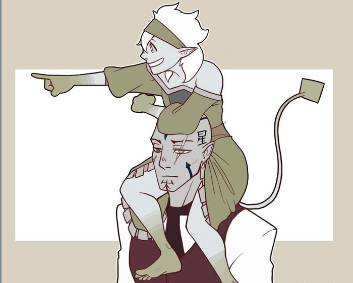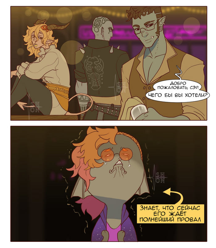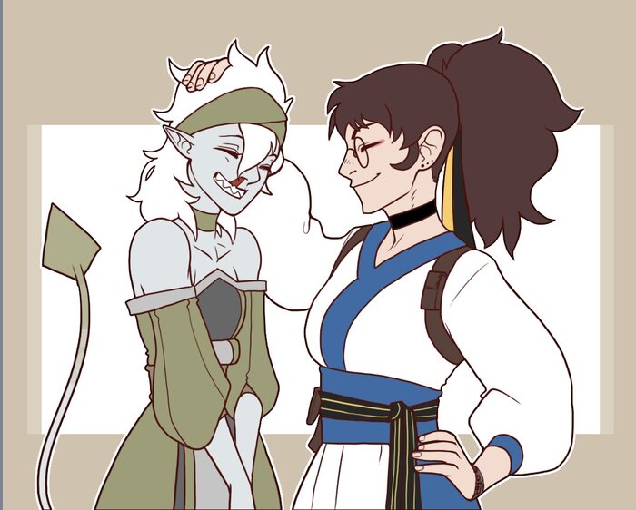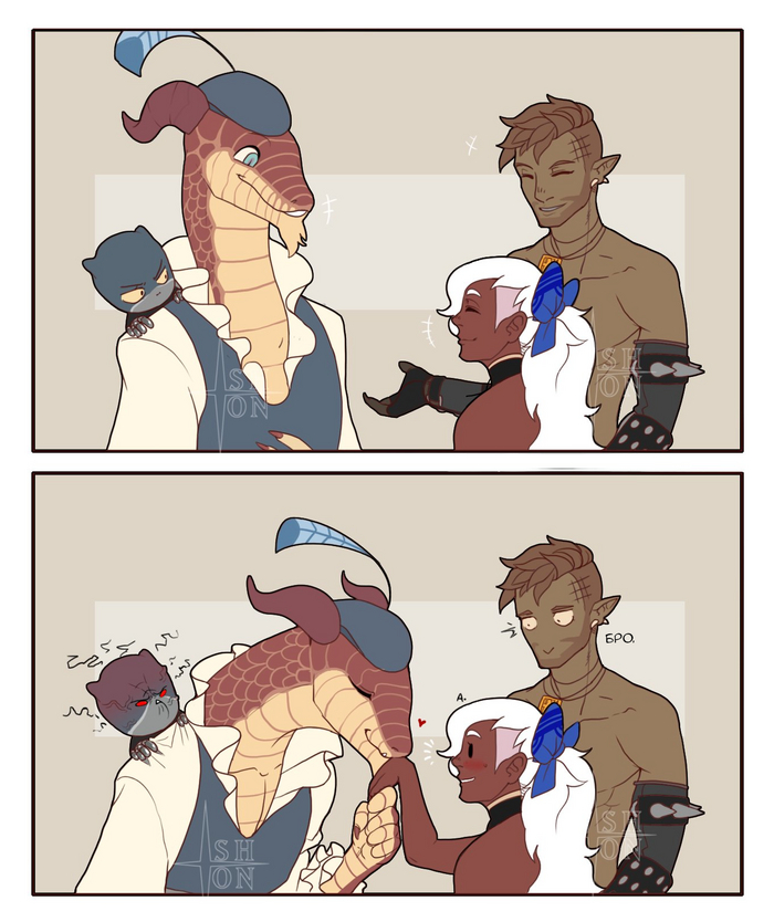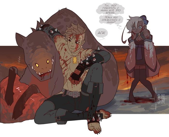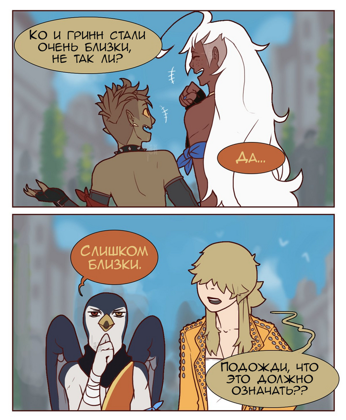 Гринн знакомит свою напарницу Койю со своим лучшим другом Раллом, драконорожденным.