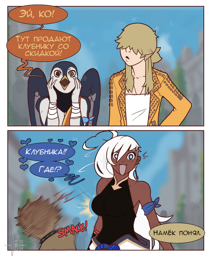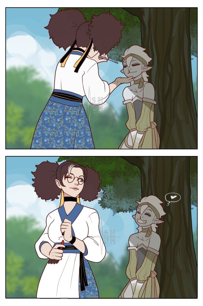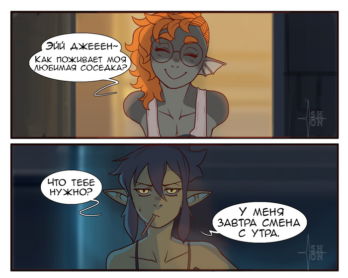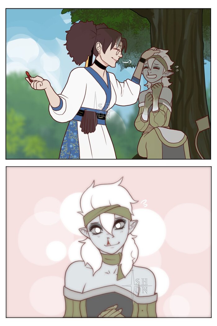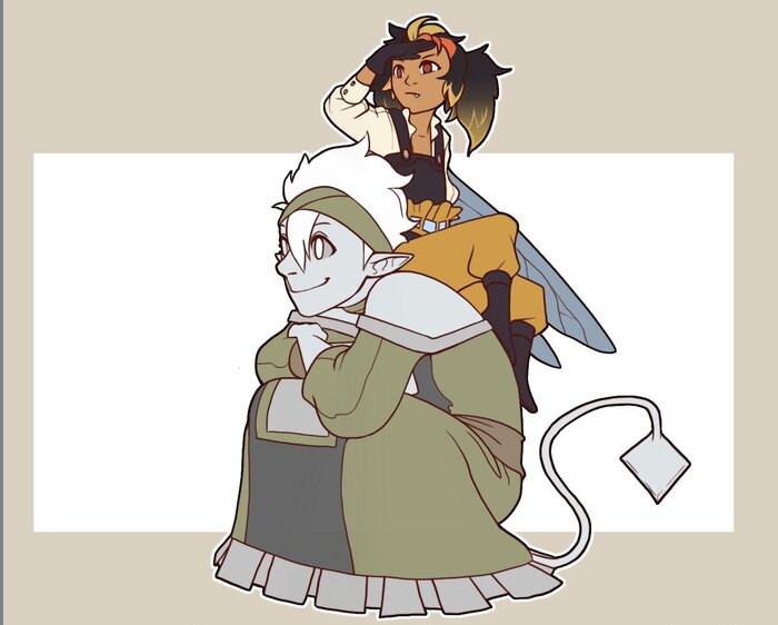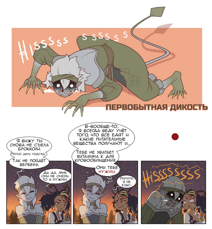 Гринн знакомит свою напарницу Койю со своим лучшим другом Раллом, драконорожденным.