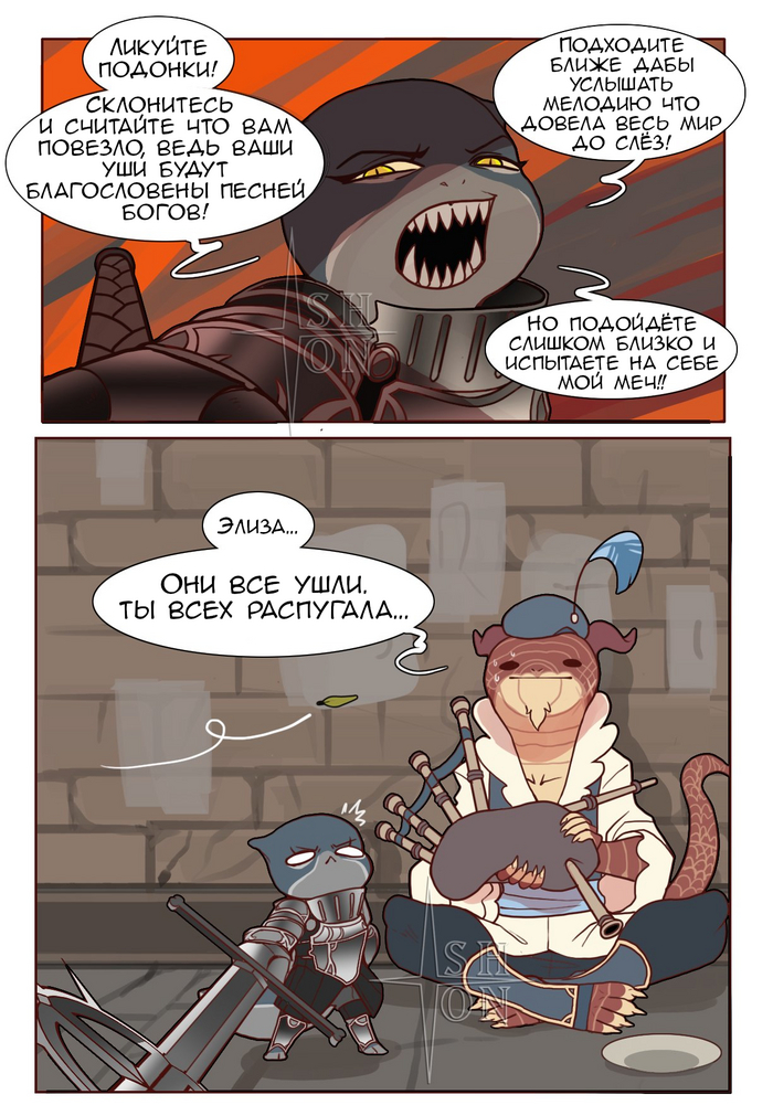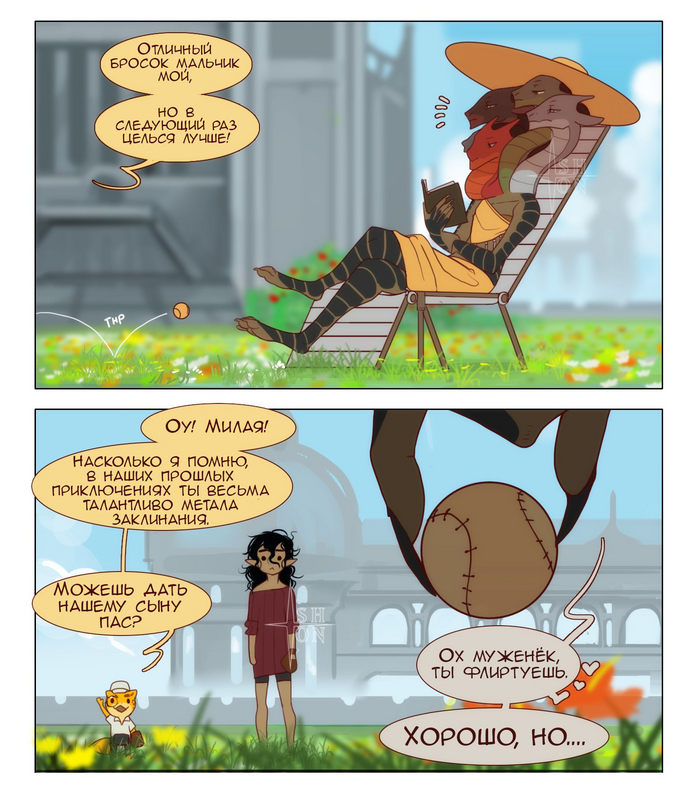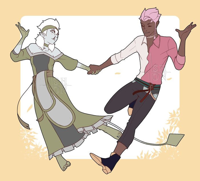 Ралл, как бард, конечно, несколько театрален и кобольд Элиза очень ревнует.