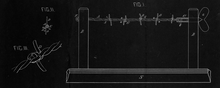 В один жаркий тихий июльский день 1873 г. трое мужчин — фермер, торговец скобяными товарами и лесозаготовитель — стояли в секции сельскохозяйственных товаров на ярмарке округа Де-Калб в штате Иллинойс. Они разглядывали примитивное ограждение для скота. Изгородь под названием «Деревянная планка с металлическими остриями» придумал Генри Роуз, который годом ранее подал заявку на свое изобретение и получил патент № 138769. Первоначально Роуз задумывал это приспособление как короткую дощечку, утыканную металлическими зубцами, которая подвешивается на лоб «непоседливой» корове и колет ее при каждой попытке пробраться через забор. На ярмарке демонстрировался второй вариант изобретения Роуза: дощечка с остриями подвешивалась над уже построенным забором из проволоки или досок и визуально и физически отпугивала коров, пытавшихся сбежать.