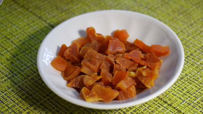 Шаг 8: Дальше нам понадобится банка сливового варенья, джема или, как у меня, конфитюра. Намазываем конфитюр на две части. А дальше пласты коврижек сложить друг на друга. Кладем одну часть с вареньем на другую и накрываем третьей. Пряник очень мягкий и нежный, поднимать их надо аккуратнее. Иначе все может развалится.