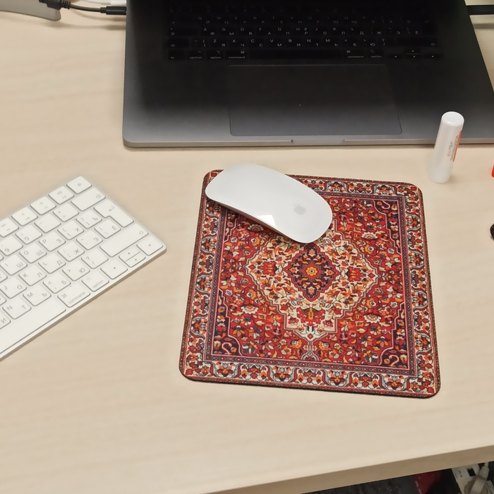 Когда ковер был извлечен из своей упаковки, оказалось что он намного здоровее чем ожидалось, занимает немалую часть стола.