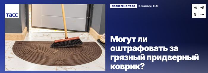 В Сети обсуждают нововведение — россиян начнут штрафовать за грязный коврик у входной двери. Якобы это нарушение санитарно-эпидемиологических требований.