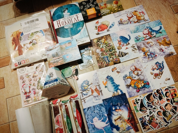 Здесь все , что я люблю и даже больше. Все предпочтения по анкете, все, понимаете❤ Набор для валяния, с зимним сюжетом, книга которую, я уже начала читать, очень интересная. Открытки для посткроссера, это в самое сердце. Стикеры по любимому сериалу, местные северные вкусняшки(мармелад и кедровые орешки в шоколаде) они- обалденные! Мне очень все понравилось. Я в полном восторге! Спасибо от всей души моя хорошая снегурочка, желаю в новом году много много счастья✨🗾🌠❤
