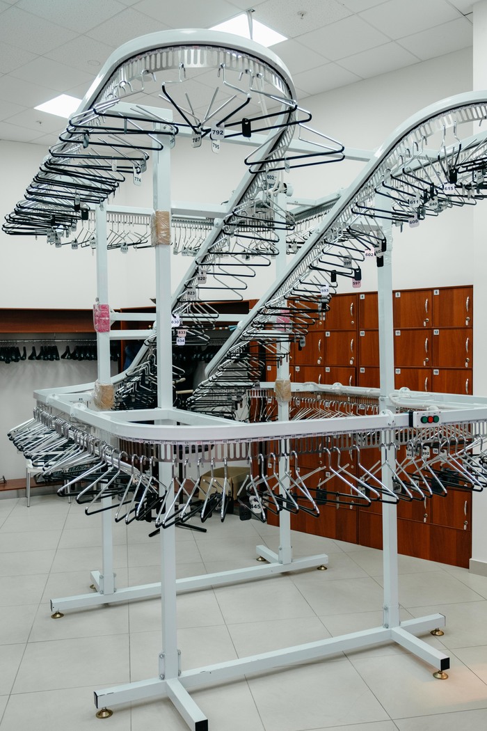 В торговом центре тепло и комфортно, так что раздеваемся. Вот такая там электрическая вешалка. Вжух и она едет. Это же круто!!!!!