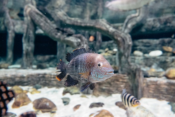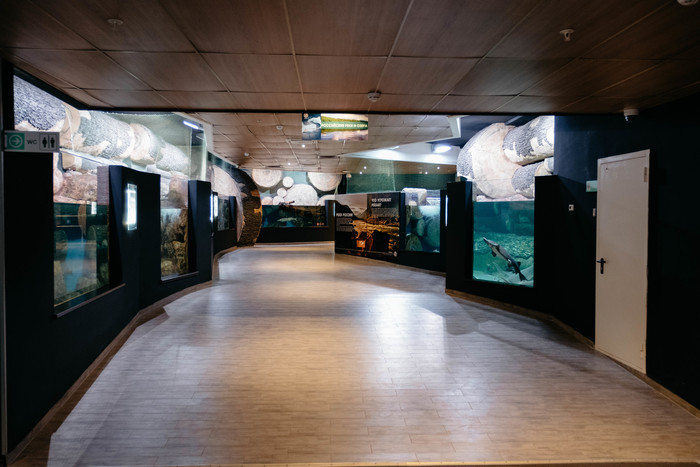 В океанариуме есть следующие зоны: открытый океан, тропическое побережья, дождевой лес, коралловые рифы, отечественные реки и озера.
