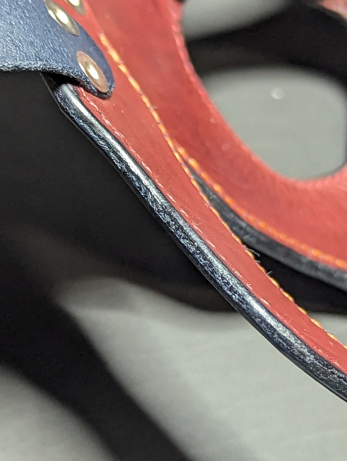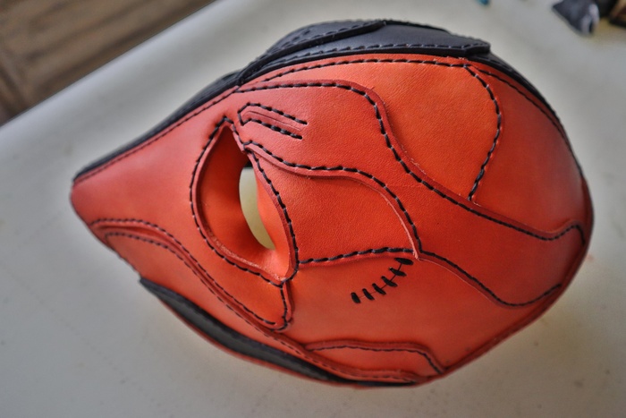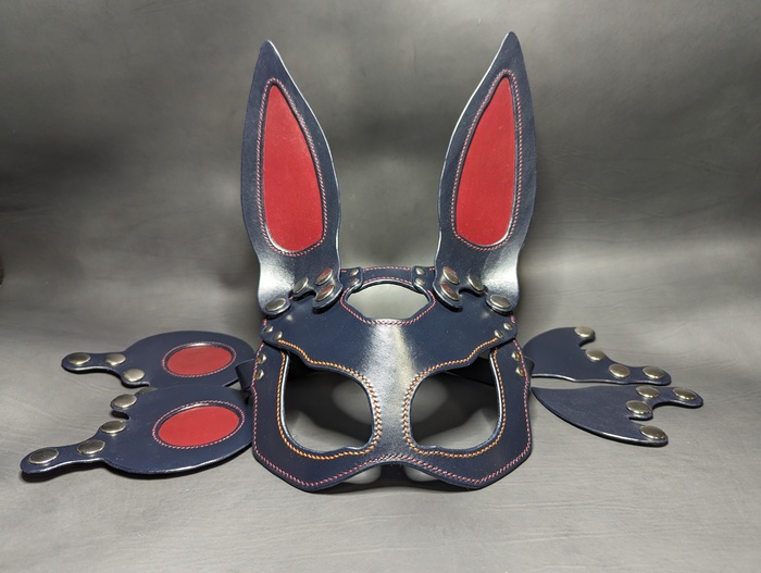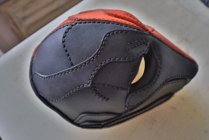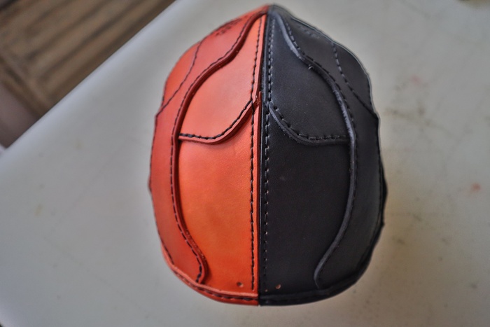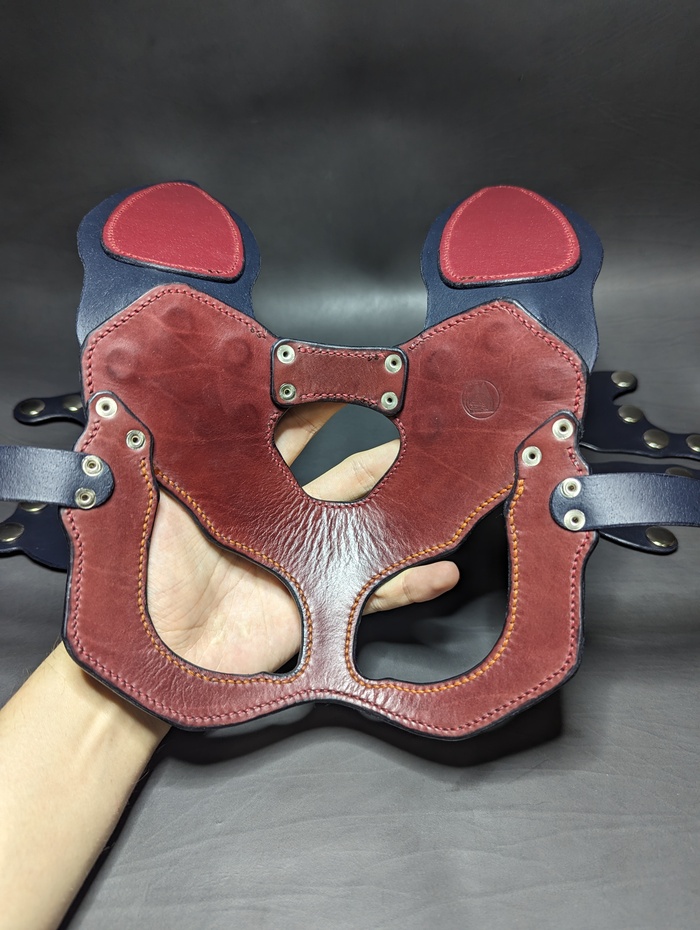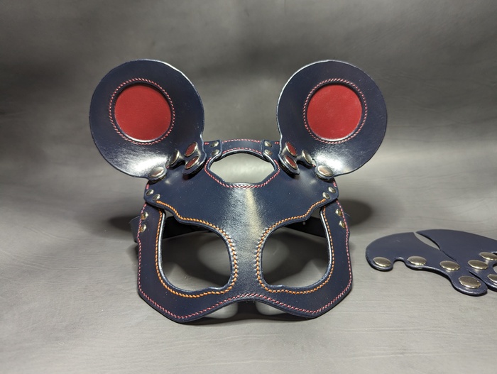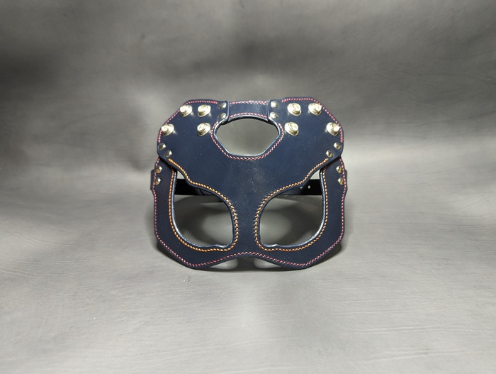 Дело было вечером, делать было нечего. Была куплена вакета Nuti Ivo double face в цветах Blue Navy и Bordo, из загашников выскреблись остатки телятины incas merlo, чуть-чуть проникающей краски, токонольчика, коламбуса, всяких финишей и не чуть-чуть екостика 1815в и апперто mild для верху. За месяц медленного, но верного сидения на жопи ровно, лапы мои кривые как кривые у сий прекрасной маски, всё таки её сваяли. Телятинка пошла на подклад, тк всё закрытая обратка на этой вакете была достаточно жёсткая, шо будет крайне не приятно для лица. Прошито нитками CTP в основном толщиной 0,6 мм. Шаг шва 3 мм. Ну вроде основное рассказал.