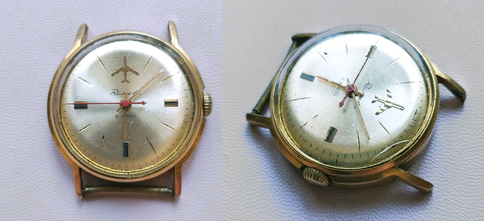 Некоторое время назад на одной из барахолок мне попались невзрачные часы Ракета «с самолетиком», фото говорило о том, что часы убиты, но уже наметанный глаз и «заднее чувство» утверждали, что из часов можно сделать конфетку. Блага цена была адекватная и решение о новом проекте принято.