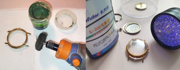 Корпус часов тоже моем в УЗМ, после чего полируем с помощью насадки на дреммель и пасты ГОИ.