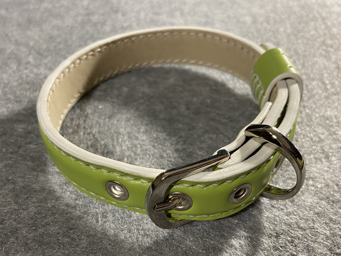 Торец кожи скруглен, закрыт тугоплавким воском и отполирован, сама кожа тоже закрыта от намокания. Что-то типа адресника - в подарок, на нем кличка и контакты хозяев, выпуклые бувкавки.