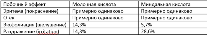 Вывод: миндальная по эффективности не уступает ретиноевой (золотому стандарту), но жжётся.