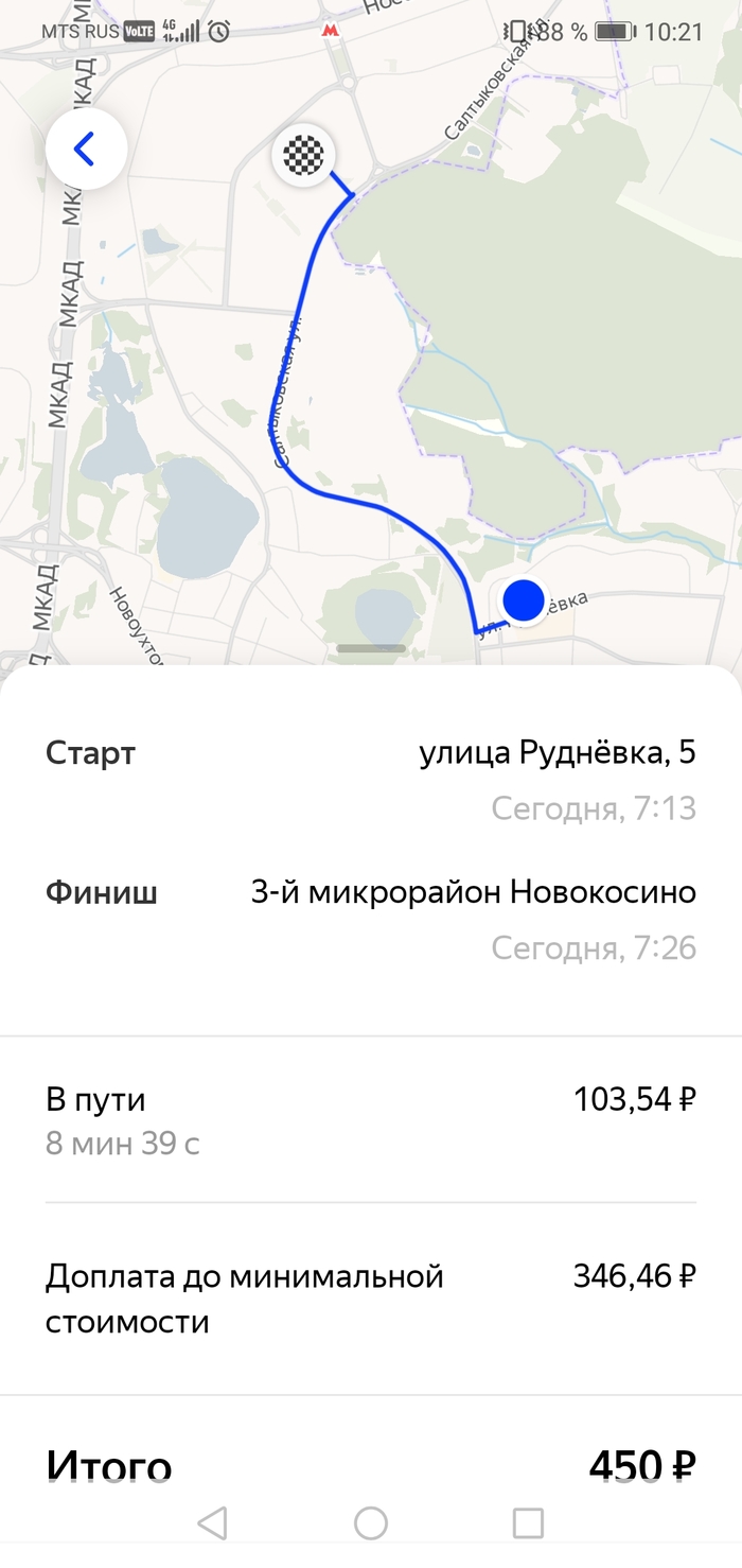 И смотрим цену... Я ехал 13 мин. Проехал 8 км. Сняли 450 р. 😧