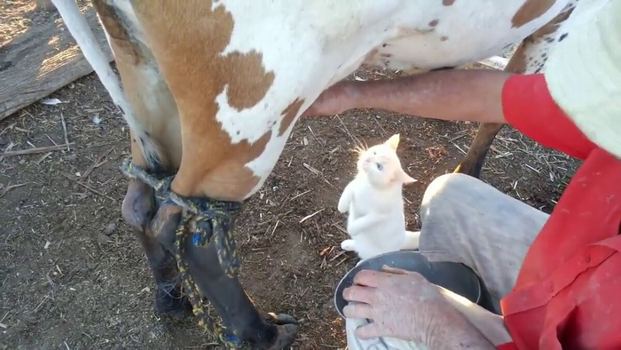 Конечно, куда опаснее коровьего хвоста – коровьи рога, бодаться коровы умеют отлично. Но есть у них еще одна неожиданная способность: корова умеет лягаться вбок, причем даже передней ногой, сгибая ее и заводя в сторону (вот в таком положении, как на картинке ниже). Во время дойки боковым ударом может опрокинуть ведро, а может и того, кто ее доит.