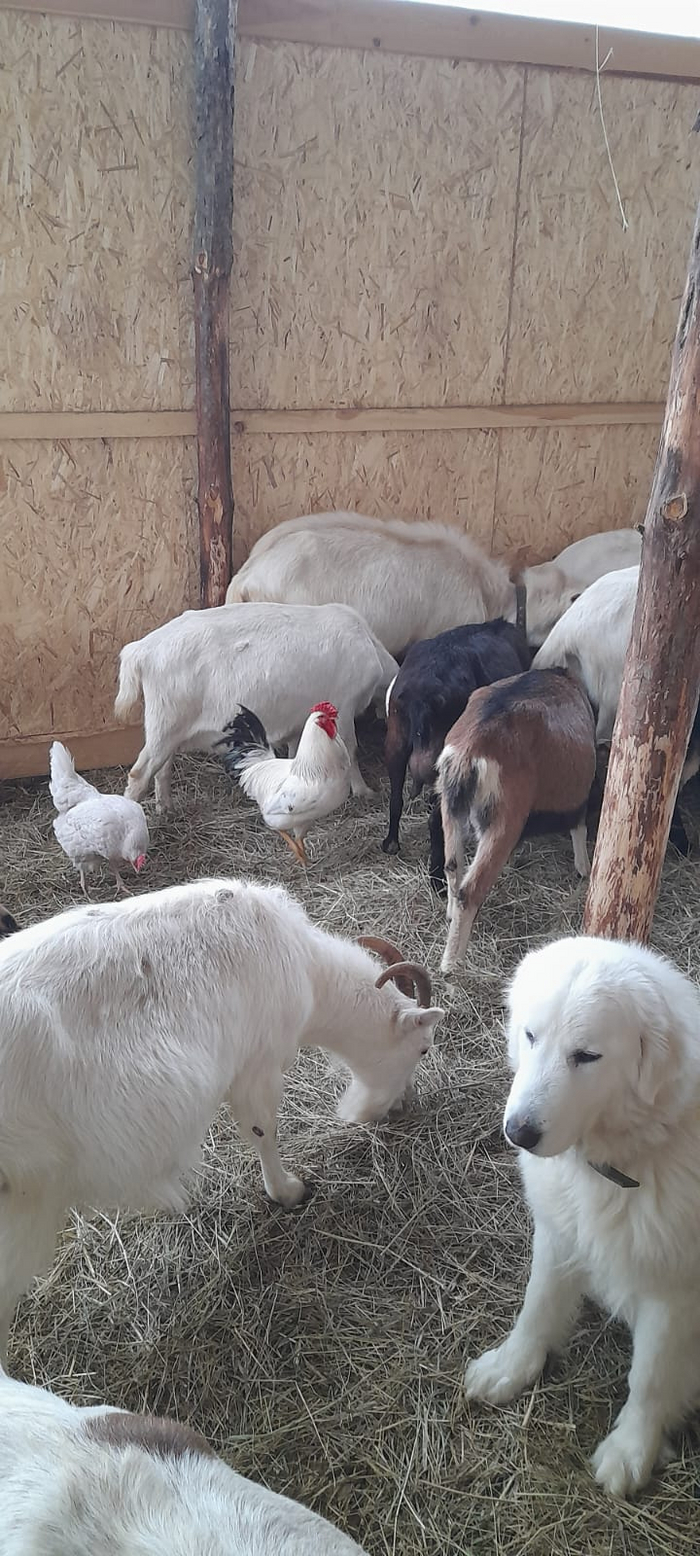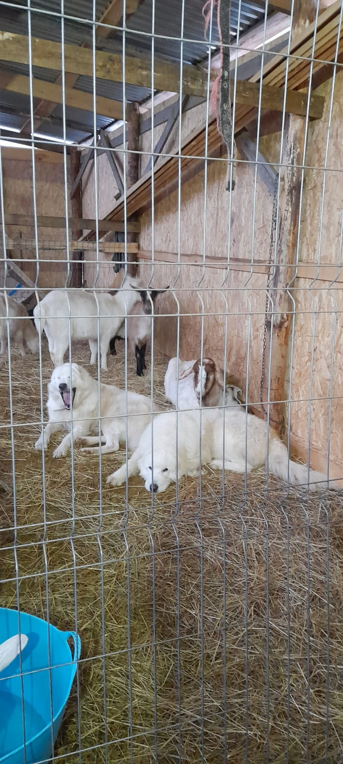 Самое наверно приятное и неожиданное проявление собак для нас это как они принимают окоты у коз. Т.к. стадо у нас немаленькое, от индивидуальных отсеков для рожениц и козлят мы отказались по ряду причин, поэтому рожают они прям вместе со всеми. Собаки очень хорошо чувствуют приближающиеся роды у козы и создают периметр вокруг роженицы, чтобы ей было спокойно и другие козы ее не гоняли и не тревожили. Особенно хорошо это, если коза начинает рожать ночью, когда мы дрыхнем, собаки начинают лаять и будят нас. Такой вот будильник. Раньше для этого висела камера внутри, но каждый час просыпаться и смотреть рожает ли кто или нет весьма неудобно.