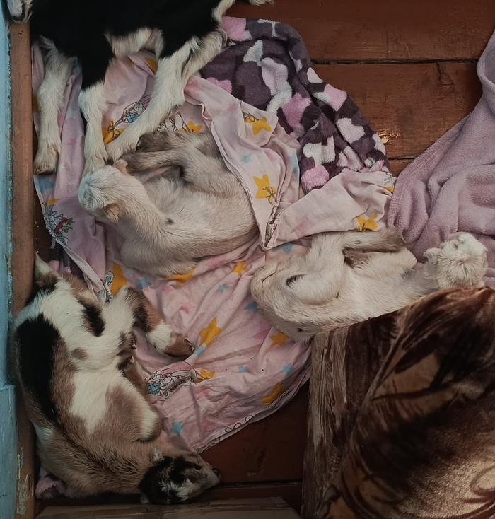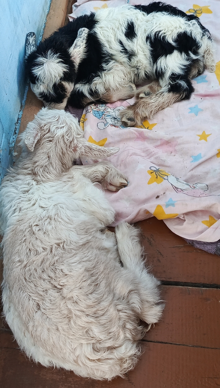 Я прям сильно удивилась и расстроилась, ну как так, вроде такая крепкая и сдохла. Обычно козленок лежит в таком положении либо когда уже отъехал либо незадолго перед тем. Подошла и удивилась второй раз - спит она так. Дыхание ровное, всё нормально, просто ей так удобно.... За почти 7 лет содержания коз не видела чтобы здоровые козлята так спали. Растормошила на всякий случай)
