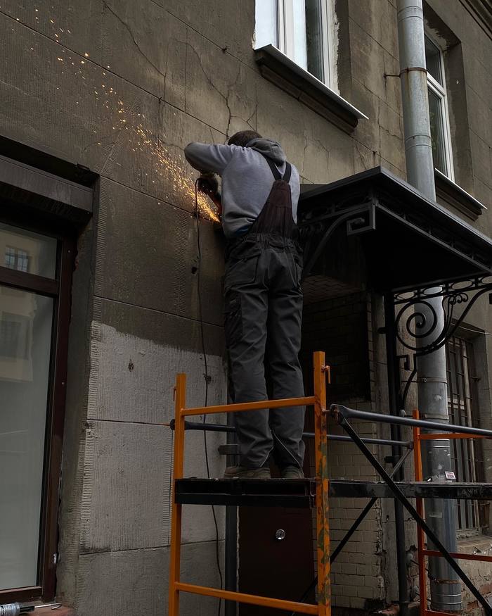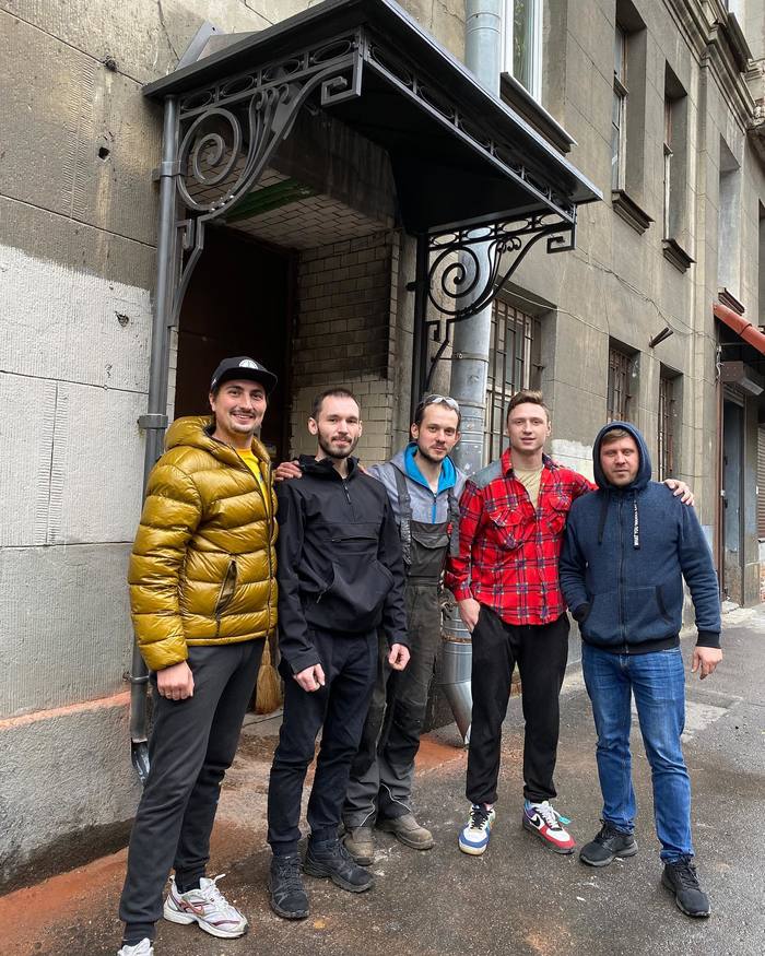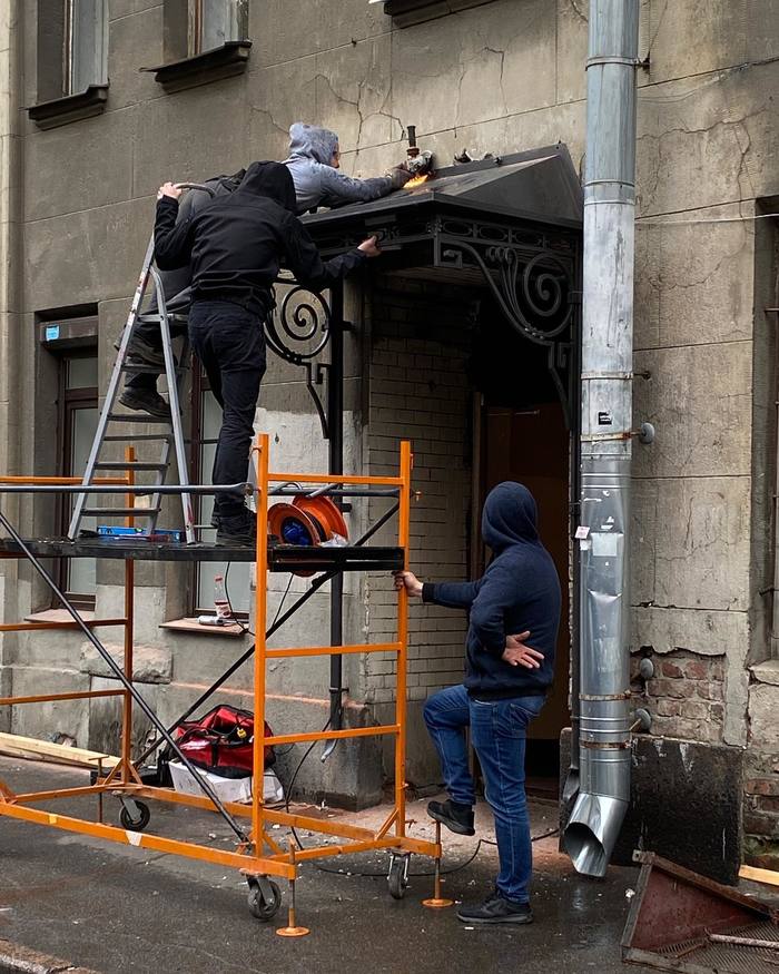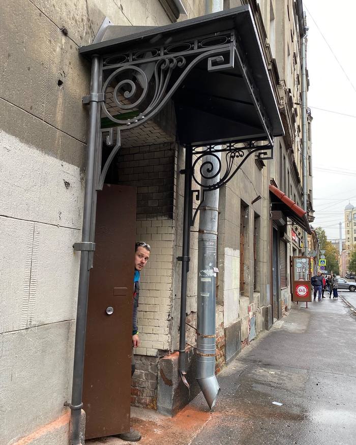 мой муж @danilareshetov летом(или ещё весной) придумал крутую затею: сделать нормальный козырёк на наш подъезд. Потому что была какая-то какашка из 90-х 😂