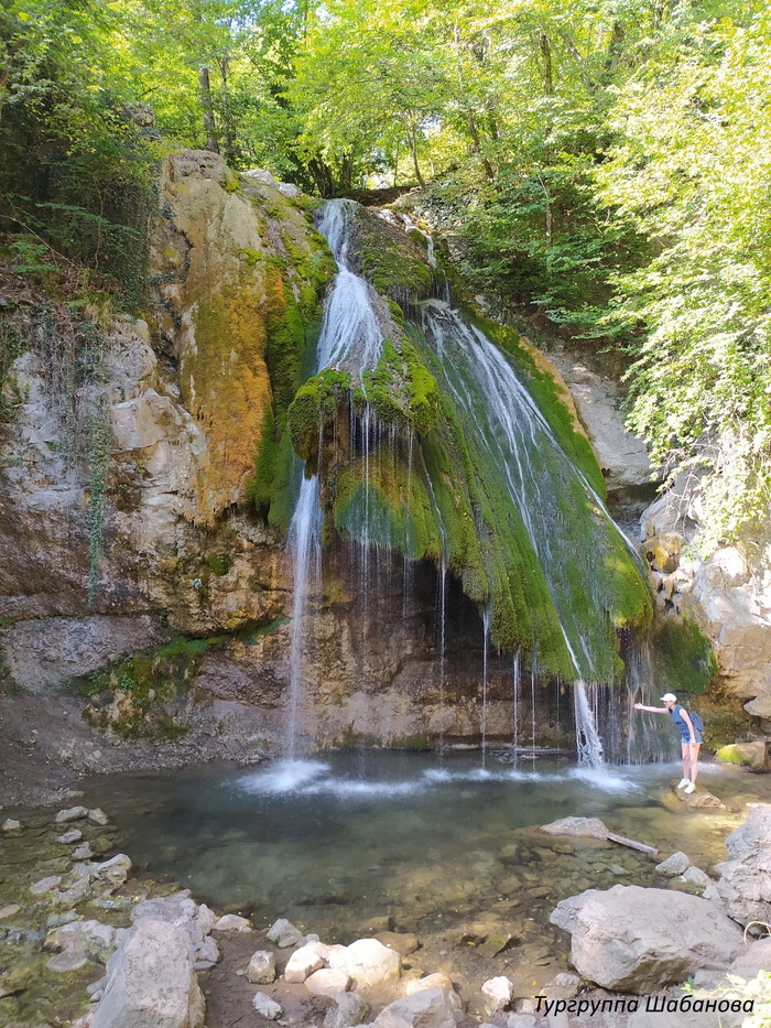 Самый высокий и самый известный. Водопад, к которому проще всего добраться. Можно даже маме с коляской или туристу 70+, ибо проложена асфальтированная дорожка без ступенек. Полноводен, пока идёт таяние снегов на плато Ай-Петри. Это примерно со второй половины февраля до начала мая. Мало кто знает, что обладая небольшой ловкостью, можно пробраться по тропинке за вывеской «Учан-Су» на ту площадку, куда падает вода – к статуе орла и сфотографироваться без страшненькой трубы водозабора.