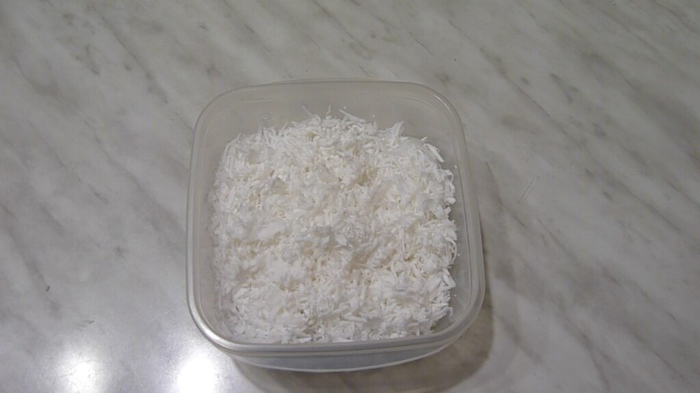Затем можно будет сделать кокосовую стружку, измельчив мякоть в каком-либо гаджете, либо потерев на крупной или мелкой терке. Таким образом кокосовую стружку легко и быстро можно приготовить дома самостоятельно из свежего кокоса. Хранится она в закрытом контейнере в холодильнике.