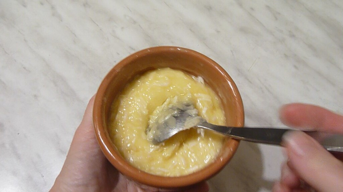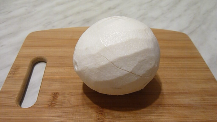 Слышно, что скорлупа треснула. Она достаточно легко отошла. Мякоть тоже немного треснула, но в целом хорошо получилось.