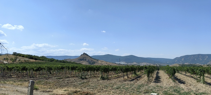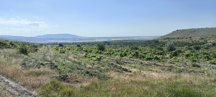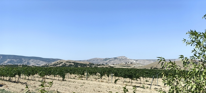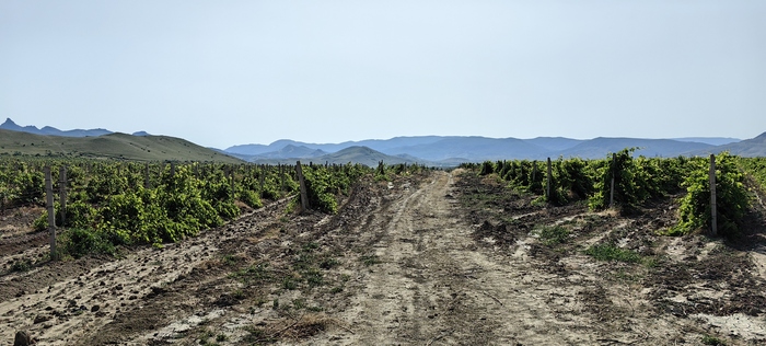 Виноградники, под палящим солнцем, напоминают нефтяные вышки, только качают из Земли будущее вино и коньяк. Эдакое месторождение муската янтарного или каберне.