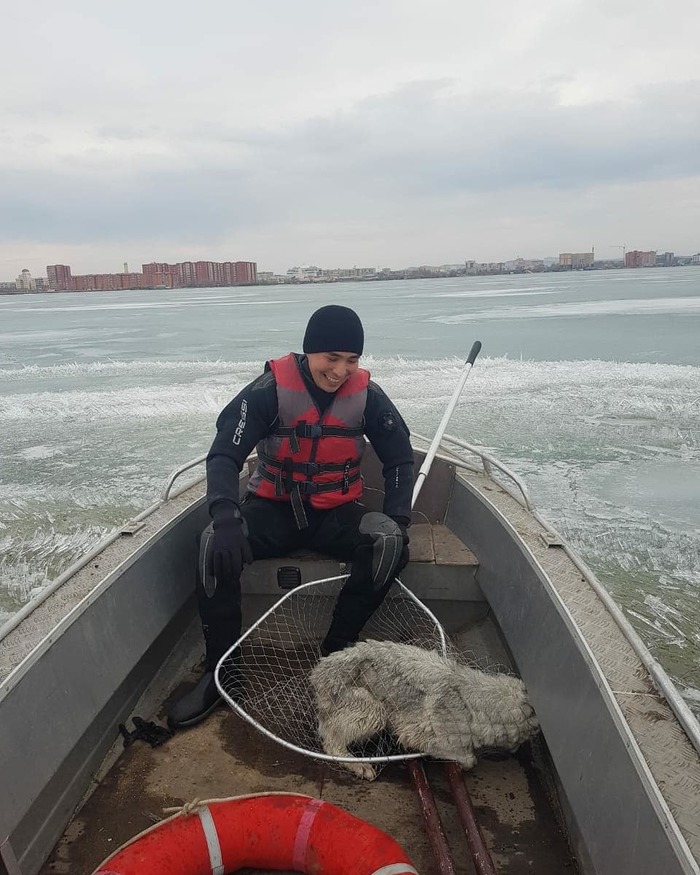 Как сообщила пресс-секретарь департамента Динара Есенбаева, спасателям удалось подобраться к собаке на лодке и поймать животное с помощью сети вечером 23 апреля.