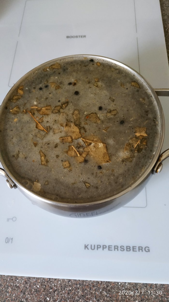 Как уже говорил ранее, процесс варки очень привередлив и требует особого внимания. Подготовленную колбасу в кишке, ветчиннице или другой оболочке погружаем в холодную воду и ставим на плиту. Весь процесс контролируем термометром. Медленно (20-40 минут) доводим температуру воды до 60 градусов (с запасом на инерцию) и убавляем мощность, и следим чтобы вода была в коридоре 60-70 градусов. Крышкой можно не закрывать. Если начинает подрастать - уменьшаем огонь, сдвигаем с огня, делаем что угодно, лишь бы не было выше 70. Идеально подходит стеклокерамическая электроплита, на которой можно очень плавно менять мощность. Если газовая плита - обязательно водяная баня. Можно варить в воде в духовке, но тогда ставим температуру воздуха 80 градусов. Теперь о времени: с того момента как вода достигла 60 градусов засекаем время и варим по 1 минуте на каждый 1 мм диаметра колбасы. Т.е. если это свиная кишка диаметром 40-42 мм - варим 40 минут, ветчинница с ребром 80 мм - 80 минут. Цель - достичь температуру 60 градусов в центре батона. После окончания варки - холодный душ и дать хорошо остыть. Хотя можно попробовать и горячую - вкус другой, но тоже очень вкусно.