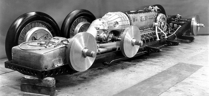 Чтобы достичь поставленной цели, изобретатели решили сделать силовую установку болида из двух 12-цилиндровых авиационных моторов Rolls-Royce Schneider. Объем каждого агрегата составлял 36,5 л, суммарная мощность – 4700 л.с.! Чтобы вместить все необходимые для такой установки функциональные узлы, длина «автомобиля» должна была быть не менее 10 метров, а снаряженная масса по предварительным расчетам – около 7 тонн…