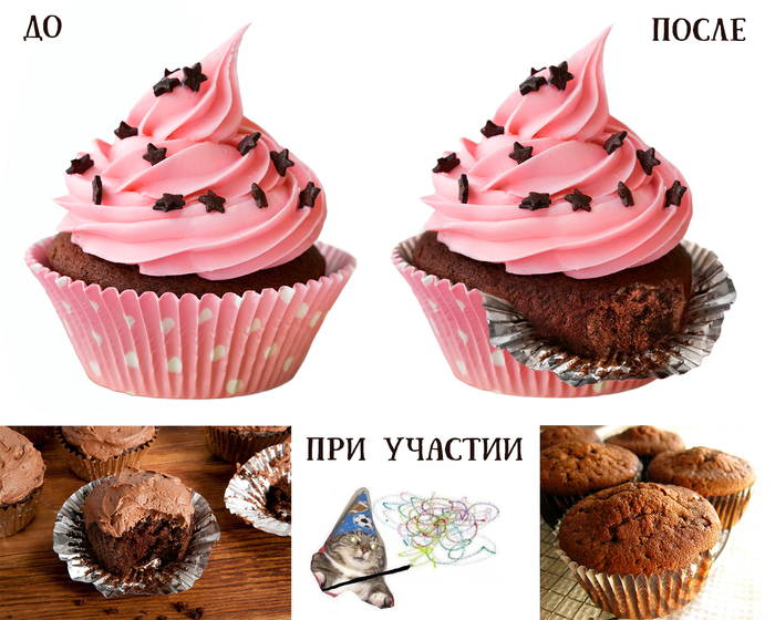 В то время я обрабатывала через агентство фотографии для одной инста-дивы и создавала для неё рекламные коллажи (к моей радости, не долго). В одном из ТЗ частью композиции должен был стать едва откусанный розовый кексик!
