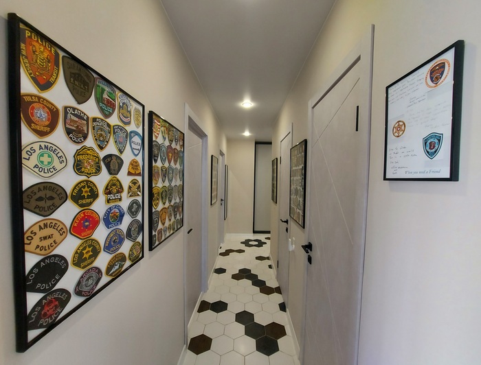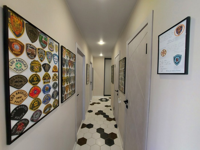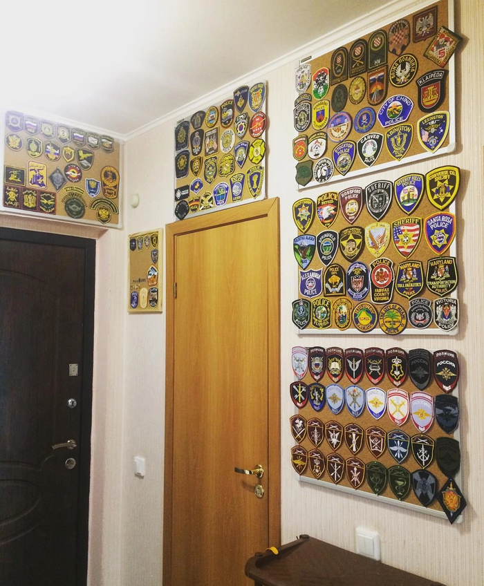 Но полтора года назад я переехал в новую квартиру и, к сожалению, мне пришлось сделать ребрендинг и повесить на стену только те нашивки, которые влезут (вчера начал вешать ещё маленькие рамки)