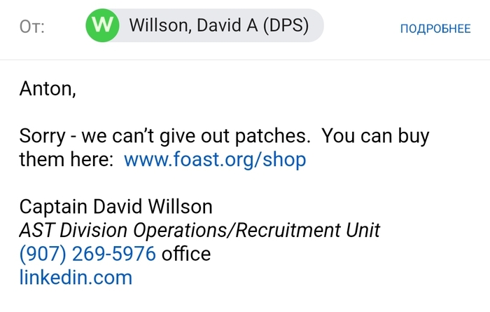 Несколько месяцев ожидания и я получил первые конверты из Майами, округа Бэр, округа Карлтон и Восточного Батон-Руж. После этого я начал усиленно писать во все полицейские участки, часами серфил в интернете, искал базы данных департаментов, чтобы найти там имейлы руководителей, десятки отправленных электронных писем ежедневно. Результат был, мягко говоря, не очень: из 100 писем отвечали 10, и из них 1-2 только присылали нашивку.