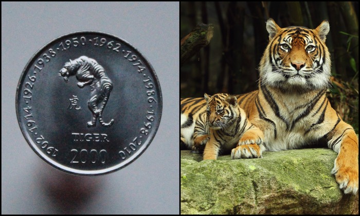 Тигр - Сомали, 10 шиллингов 2000, Китайский гороскоп - год тигра - 78 руб.