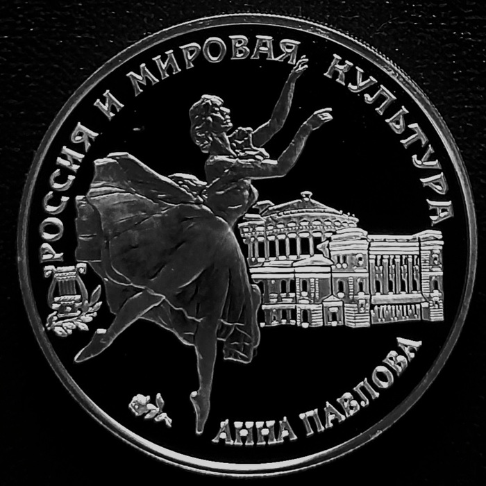 Эта монета выпущена в 1993 году в рамках серии «Россия и мировая культура». На монете изображена балерина Анна Павлова на фоне Мариинского театра в Санкт-Петербурге, слева от неё — лира и лавровая ветвь.